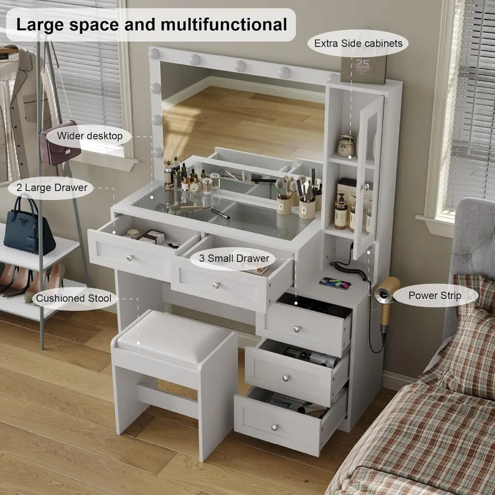 - Easy Assembly: The makeup vanity has all parts and tools included, Detailed instructions and tools are well-packed in one package, Just follow the directions according to the part numbers, and the assembly process of this white vanity with lights will be quick and easy!