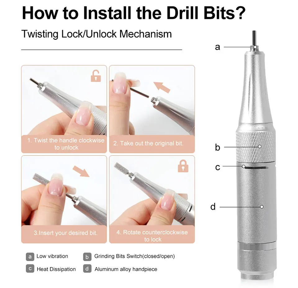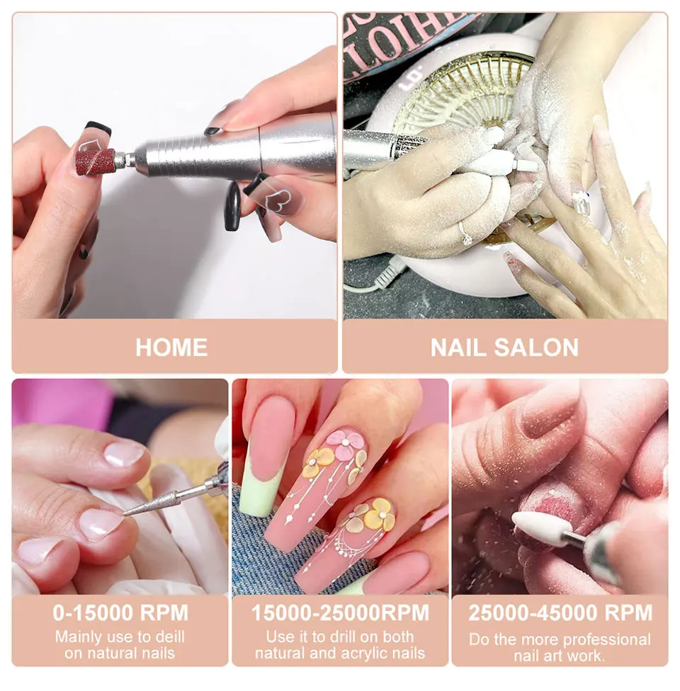NEWLY UPGRADED HIGH QUALITY: Our advanced electric manicure applicator is equipped with a powerful upgraded aluminum alloy motor and unique ventilated system motor bearings, which ensure smooth operation even at high speeds (up to 45,000 RPM) with low heat, low noise and low vibration. It is a must-have nail tool for beginners, professional nail technicians and nail enthusiasts.