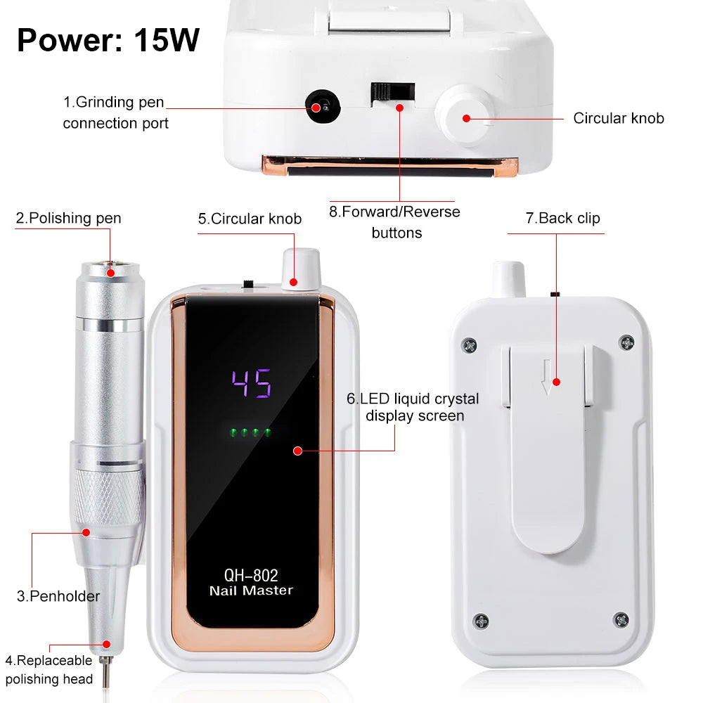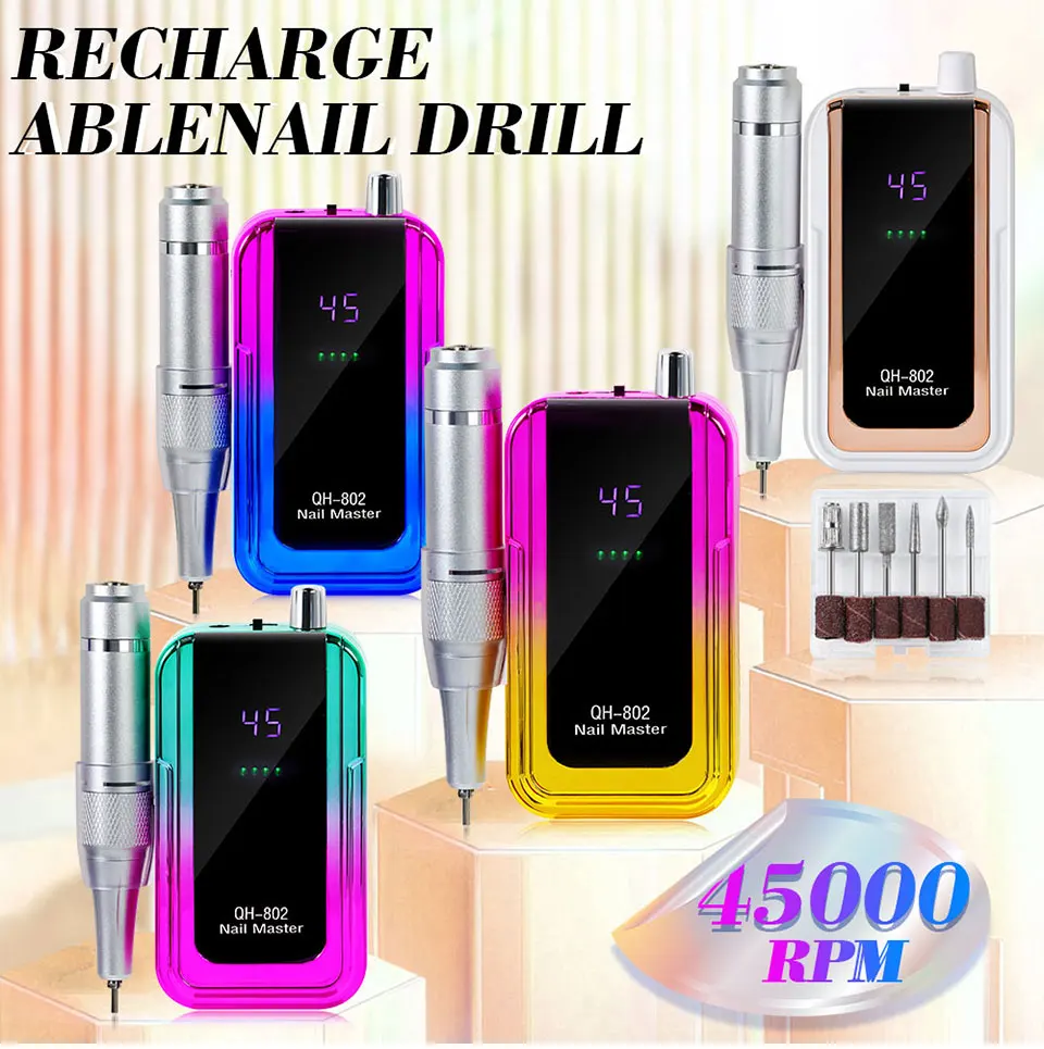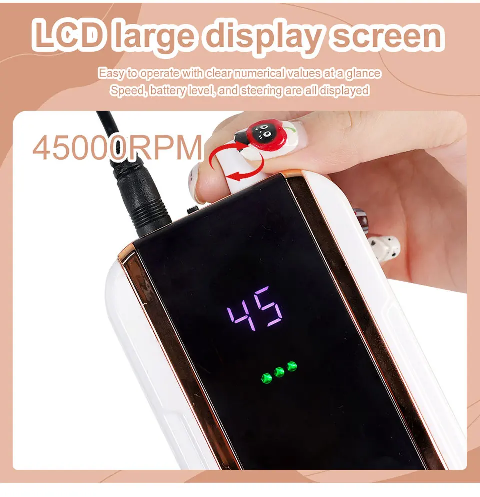 45000RPM Electric Nail Drill / File / Professional for Acrylic Gel Dip Powder Nails / Portable Machine Kit for Manicure Pedicure Tools