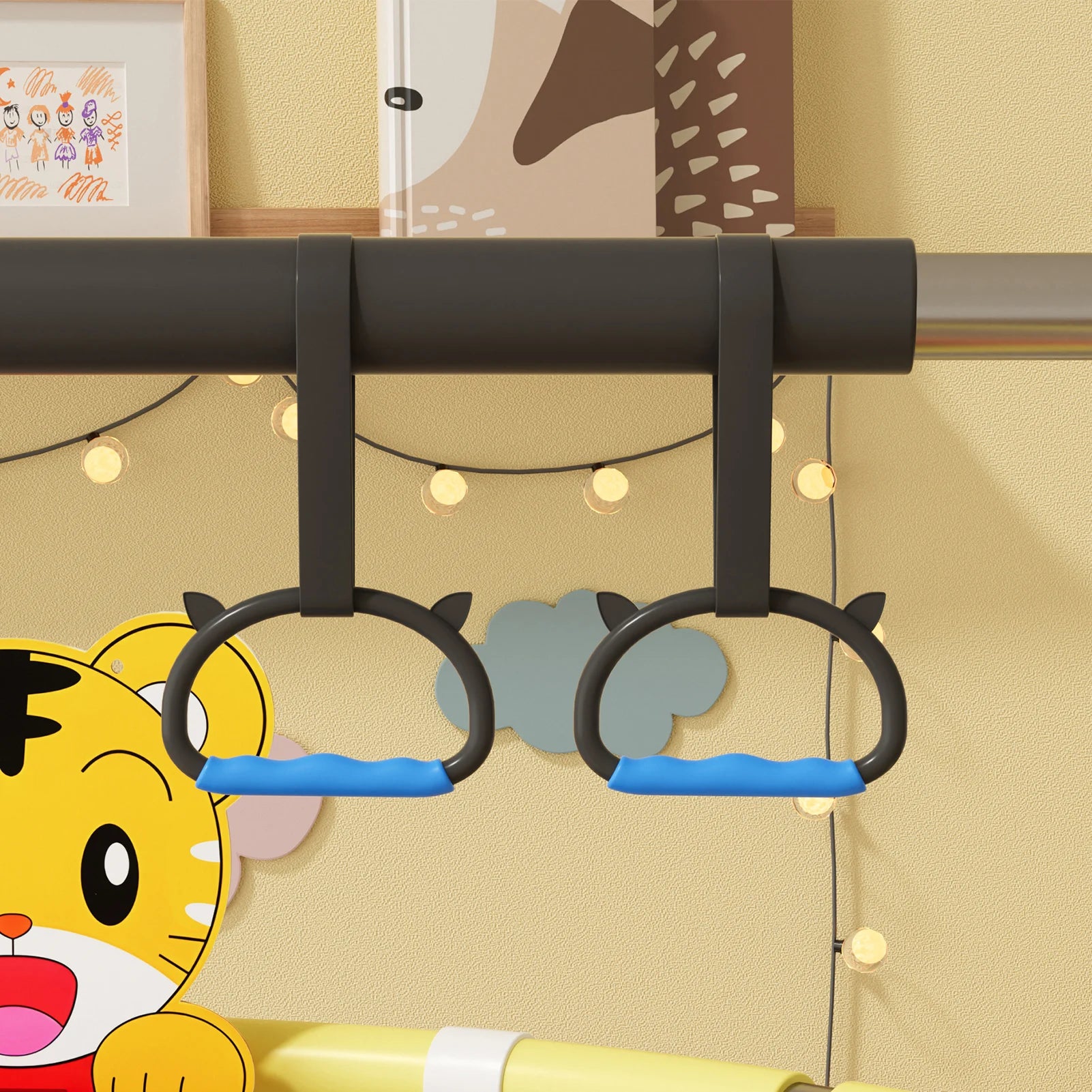 Adjustable Gymnastics Rod: Children's indoor trampoline adopts adjustable gymnastic rod design, which can be adjusted from 59 inches to 62 inches according to the height of the child. Equipped with the gymnastics ring, you can also exercise your children's physical gym and sense of balance, so they can enjoy the joy of gymnastics.
