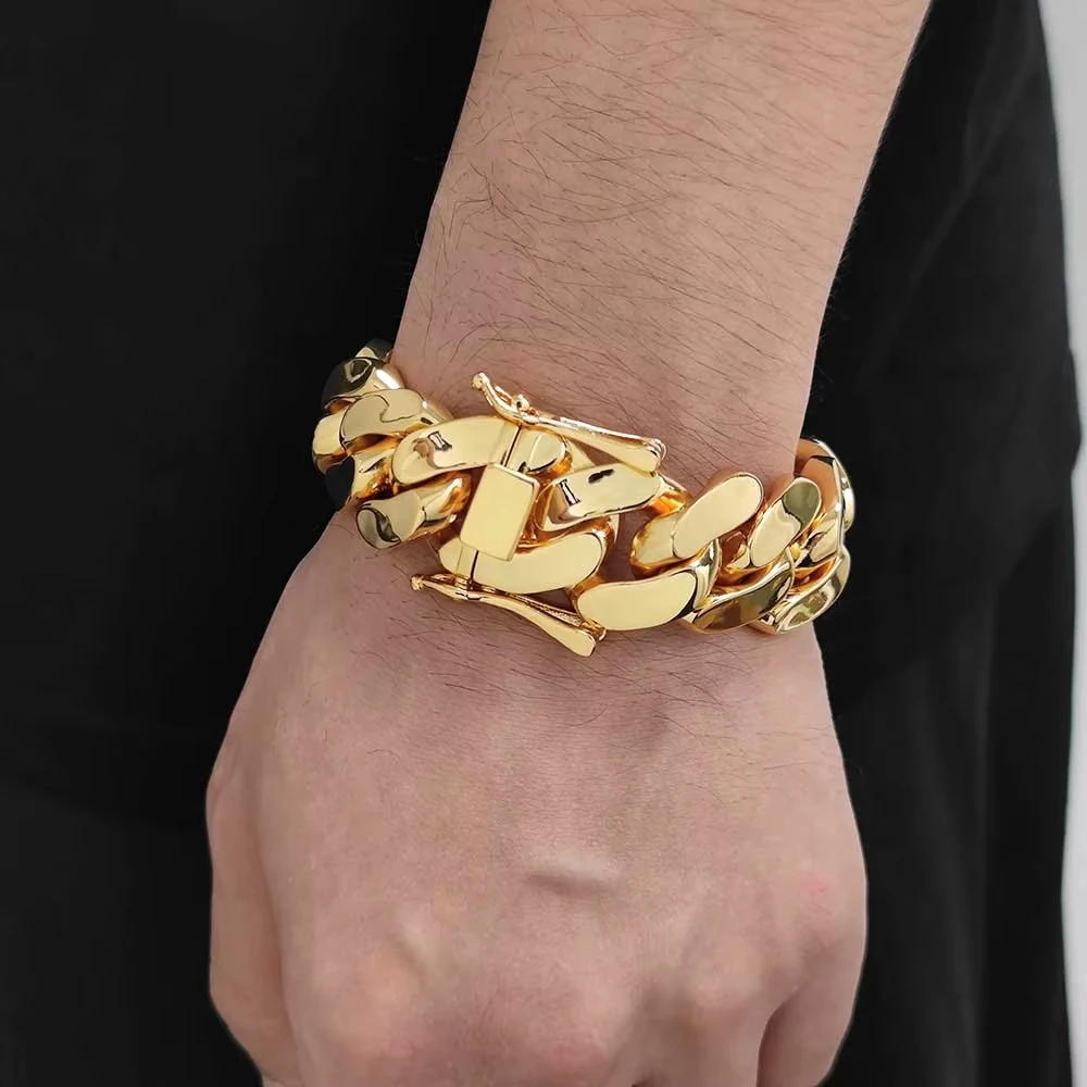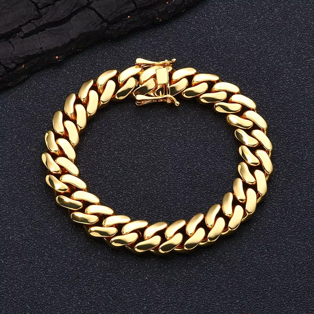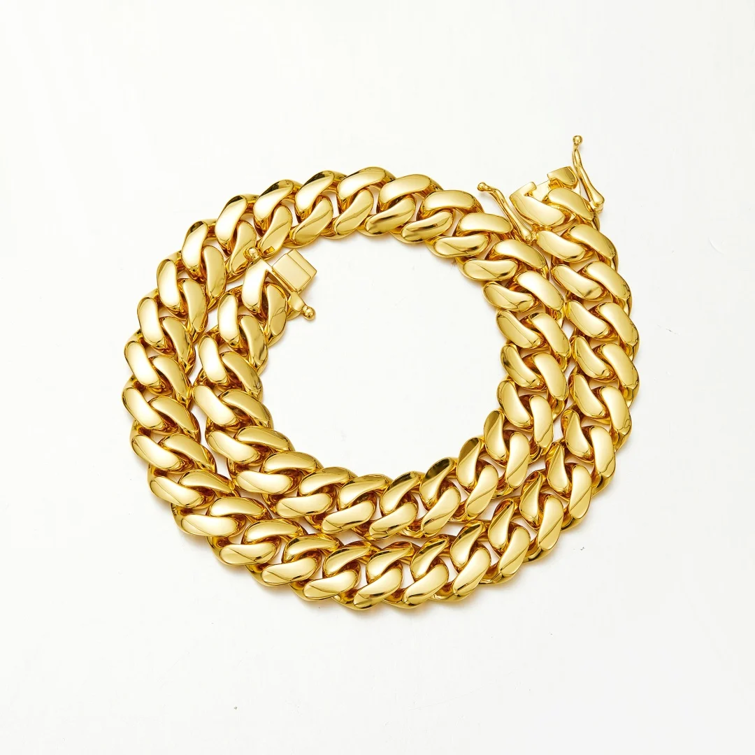 **8-22mm Hip Hop Bling / Gold Color Stainless Steel / Dense Cuban Miami Link Chain Necklaces / 18k Gold-plated Jewelry
