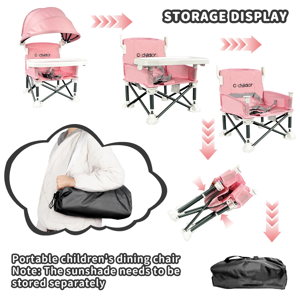 1、Booster Seat / Portable children's dining chair / Foldable / lightweight / Portable and easy to carry / Removablee Awning / Carrying-- Storage Bag included