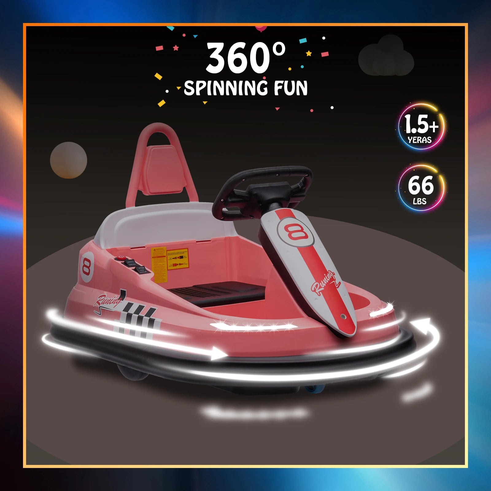 GET READY TO SPIN: This awesome new-designed kids bumper car can spin a full 360 degrees with simple steering wheel controls. With special light and sound effects it’s just like being at the fair. With a maximum speed of 1.9 mph this bumper car is a great introduction to electric ride-on cars.