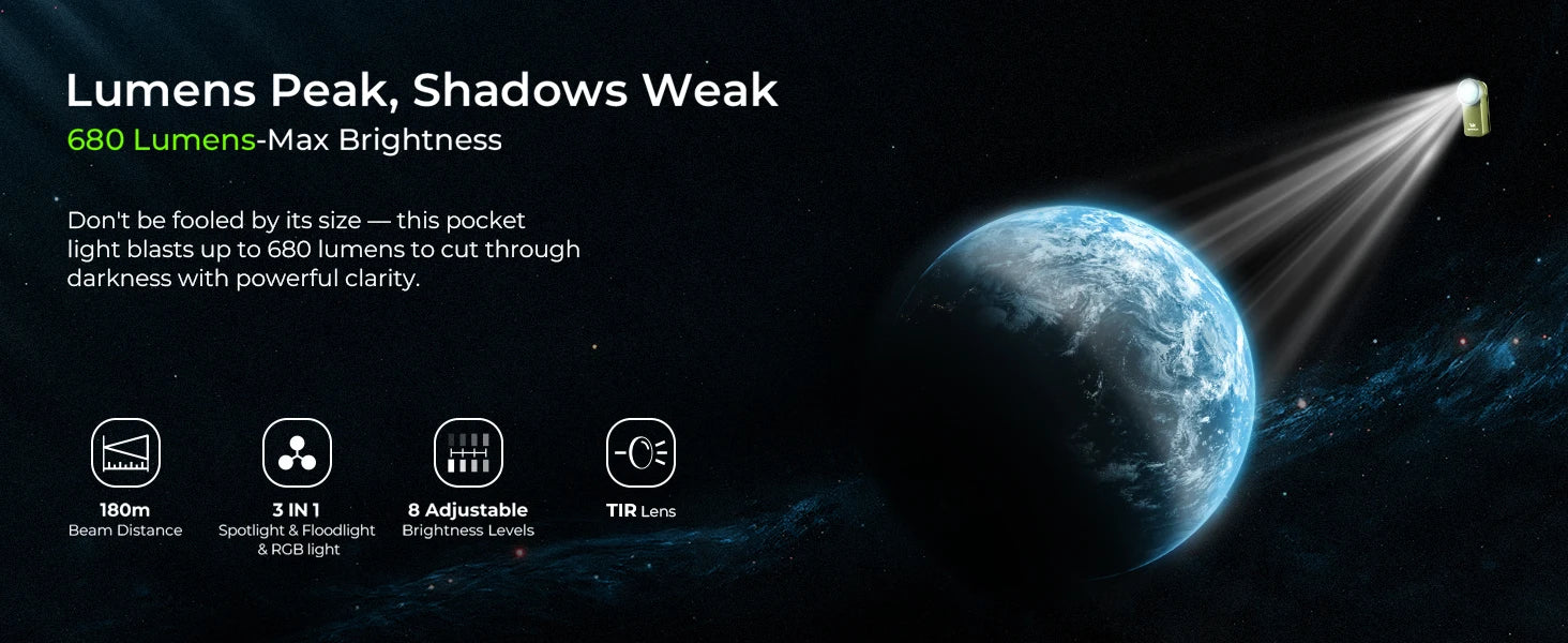 Clip Light / 680LM USB C / Rechargeable Pocket Flashlight / Mini Spotlight / Floodlight / Portable EDC RGB Torch with Magnet