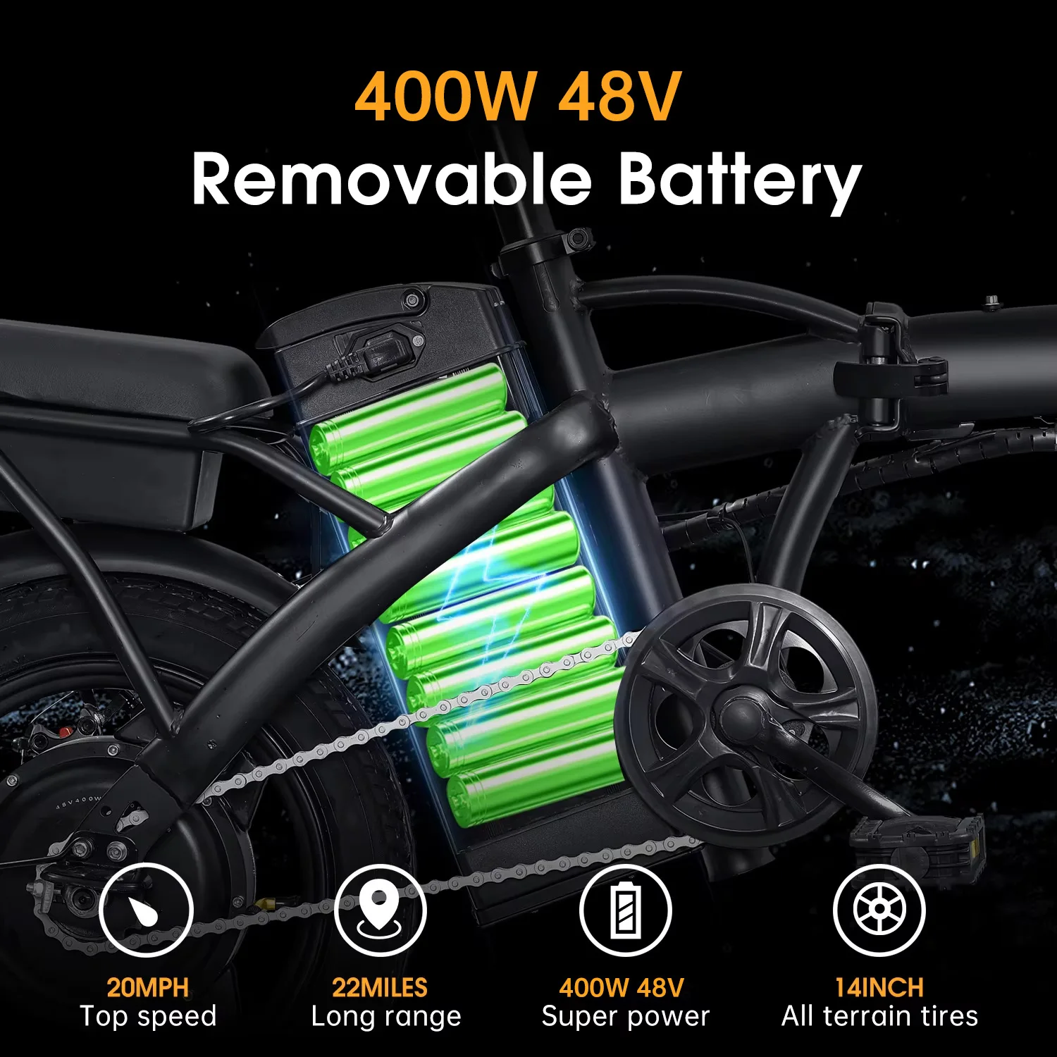 Electric Bike with Basket / 48V 400W Folding Ebike / 4 inch Road Tire / Carbon Steel / Lightweight / Foldable / Adult / Brushless