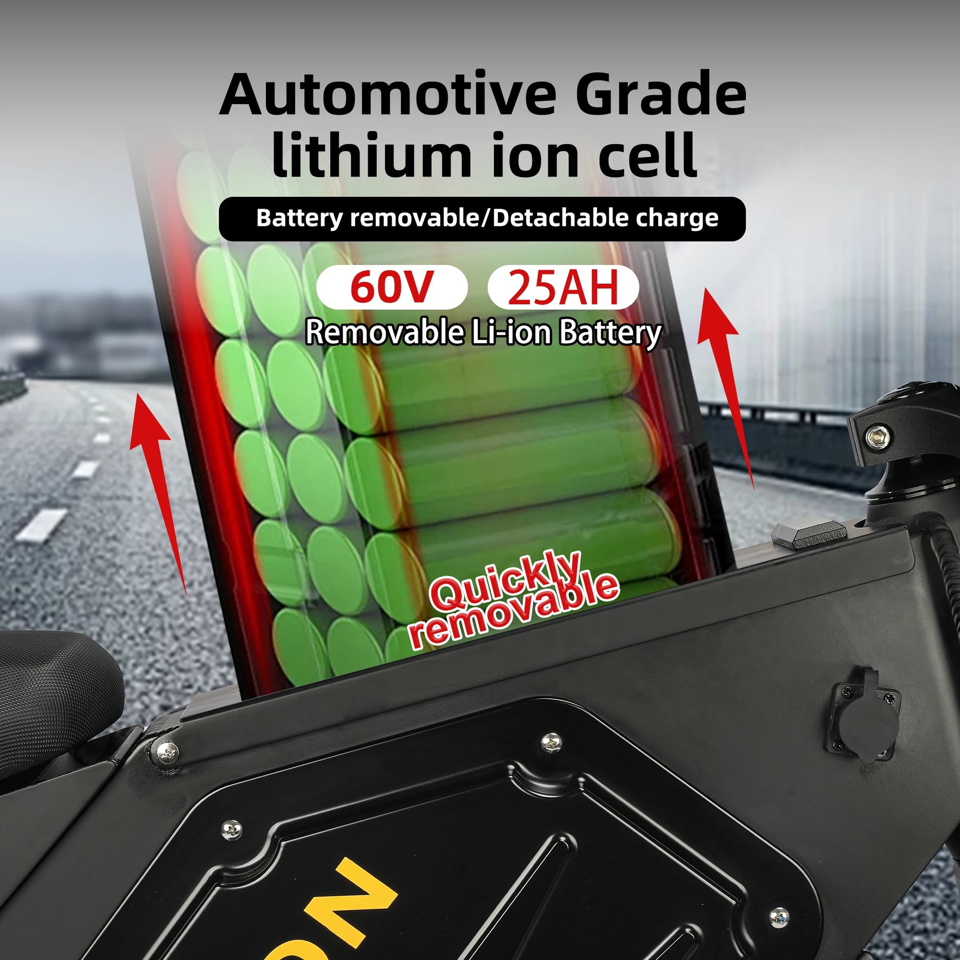 Electric Mountain Bike for Adults / 3000W E-bike / 45 MPH / 60 Miles Range / 60V 25AH Removable Battery / Dual Shock Absorber / E Bike