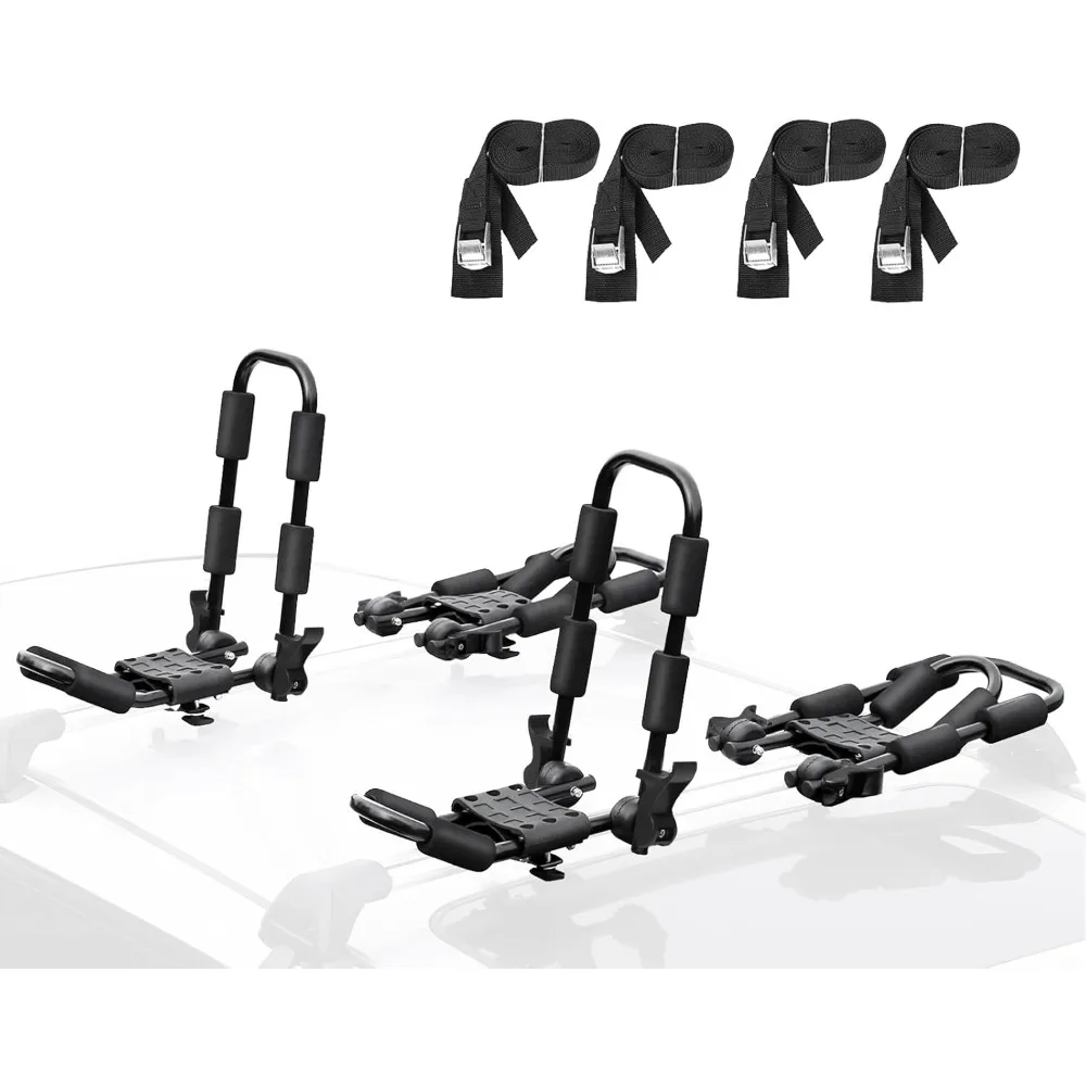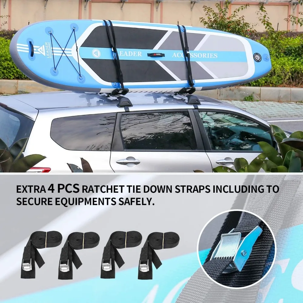 MULTI PURPOSE USE: Easy to install. Use this car roof rack to carry Kayak, Canoe, Surf board, Ski board, Snow Board and SUP. Extra 4 pcs tie down straps are included.