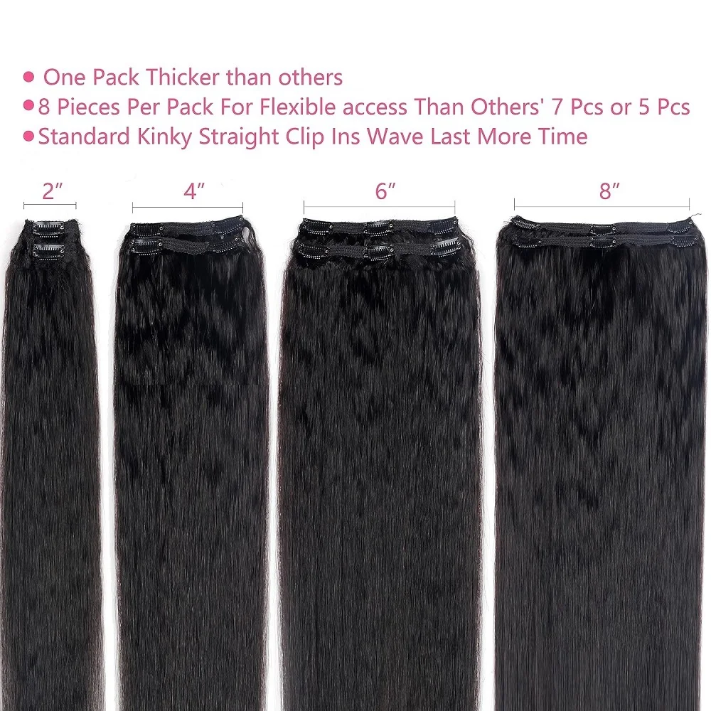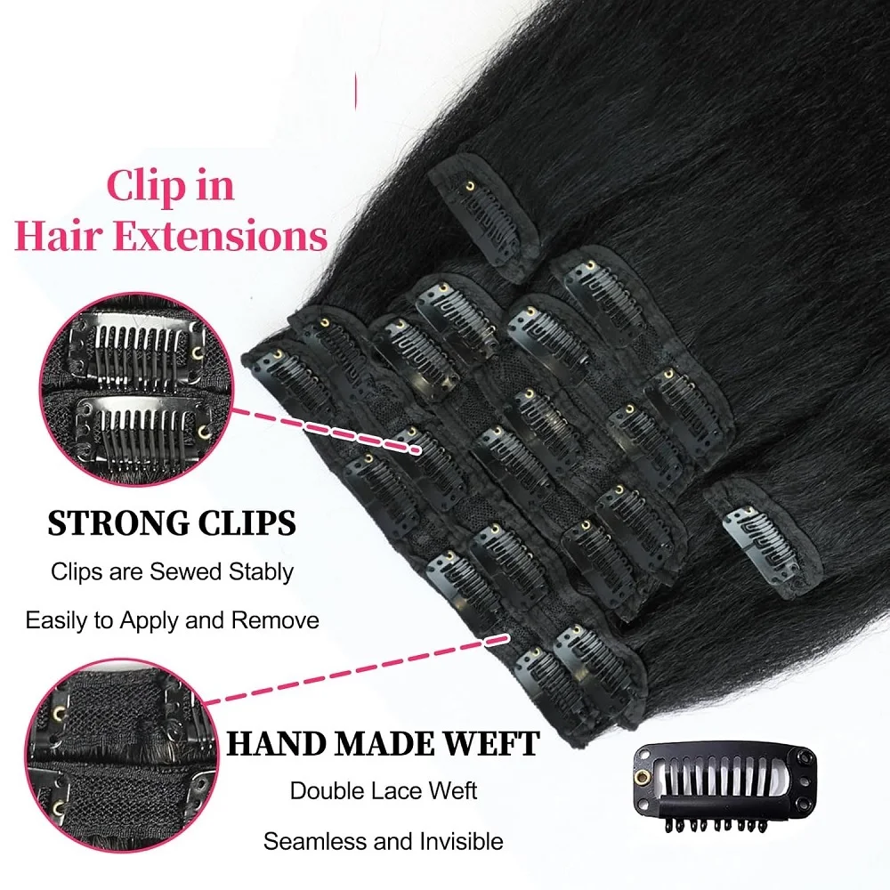 Human Hair Extensions 100% Unprocessed Remy Hair Clip in Hair Extensions Real Human Hair for Women Kinky Straight