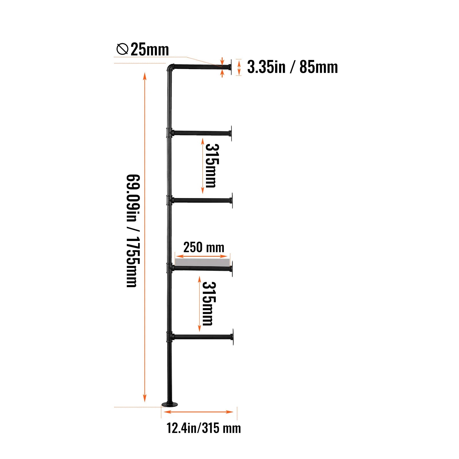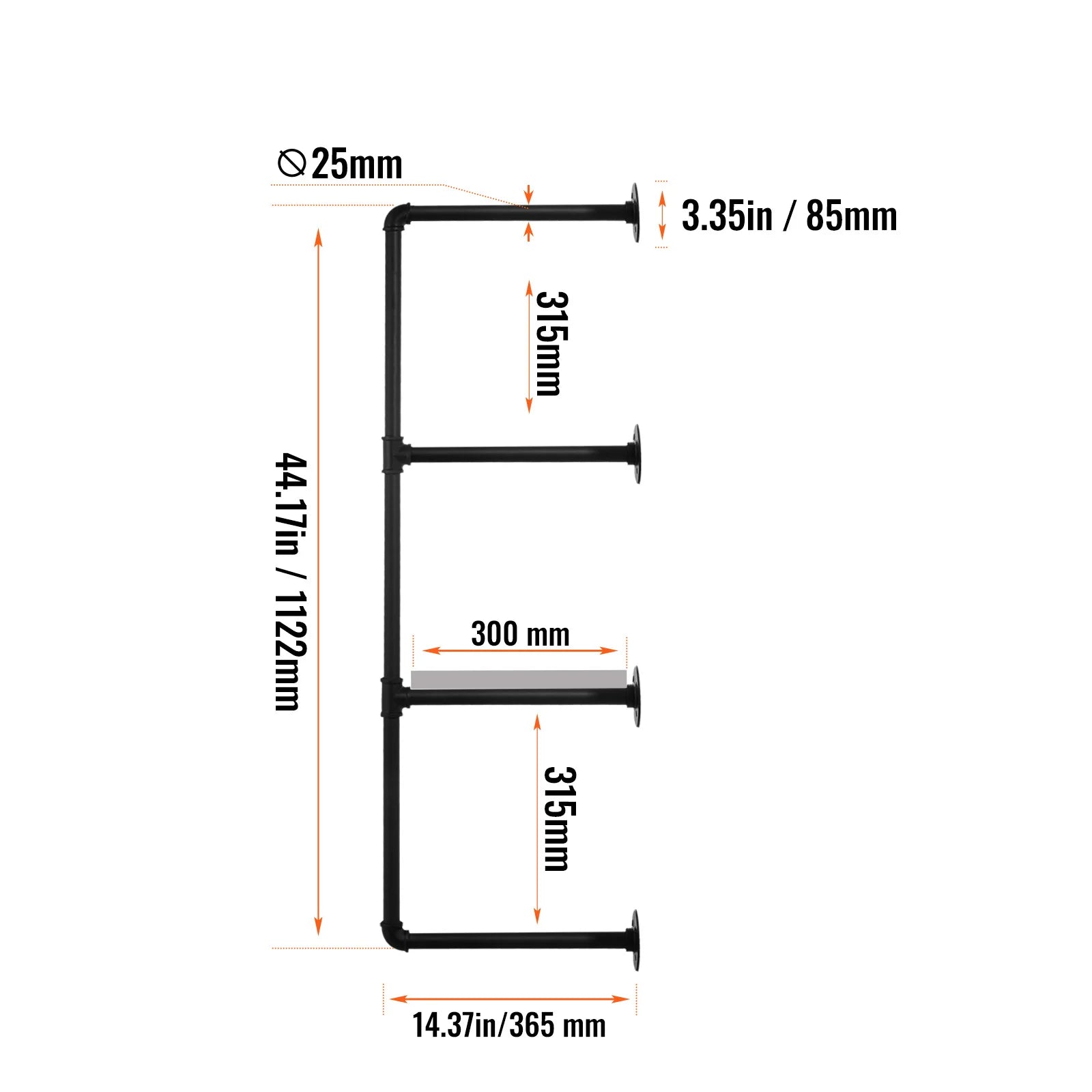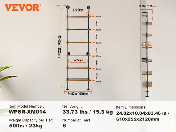 This industrial-style metal pipe shelving unit is designed for versatility and space-saving. Its wall-mounted structure can be easily installed in kitchens, living rooms, or studies, providing ample storage while enhancing the aesthetic of your home. Perfect for organizing and maximizing space in any room, this unit offers both practicality and style.