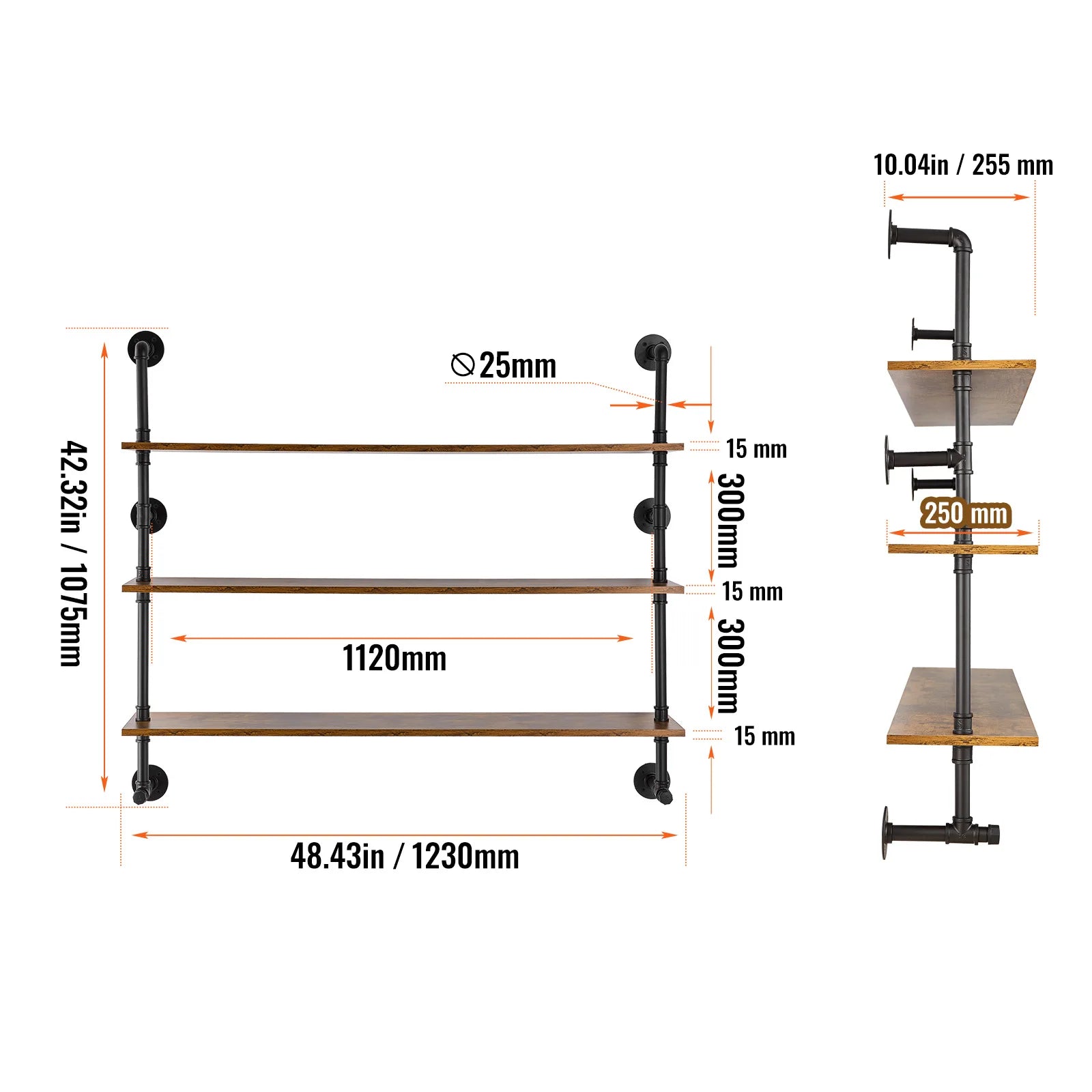 **Industrial Pipe Shelf / Wall-Mount Floating / Rustic Wood Shelves / Bracket Storage Rack for Kitchen Bedroom