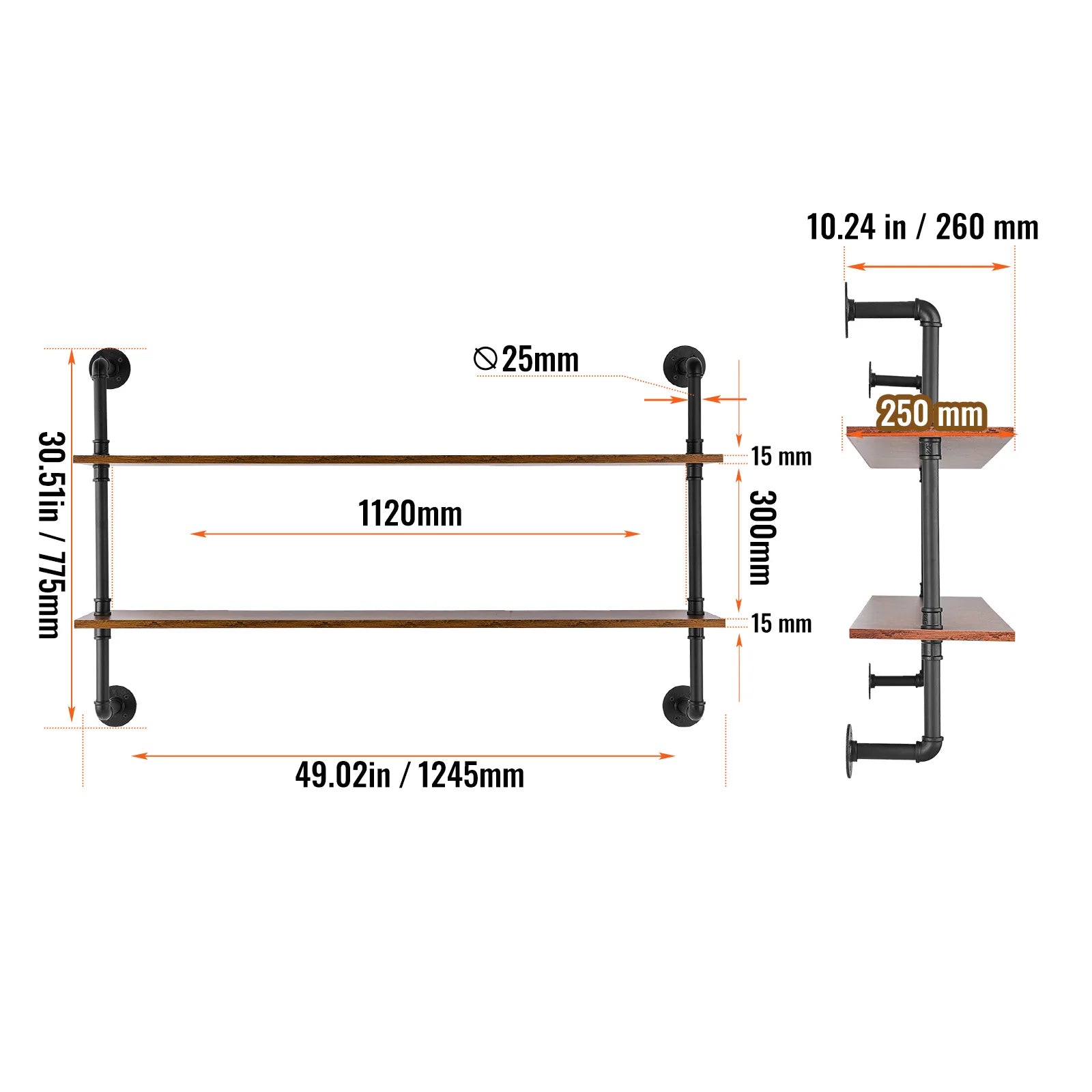 Sturdy Steel Construction: The 1"" carbon steel tubing offers a robust, break-resistant structure, while the 0.6"" thick wooden boards provide stable support for various items, ensuring your belongings are secure without the risk of bending.