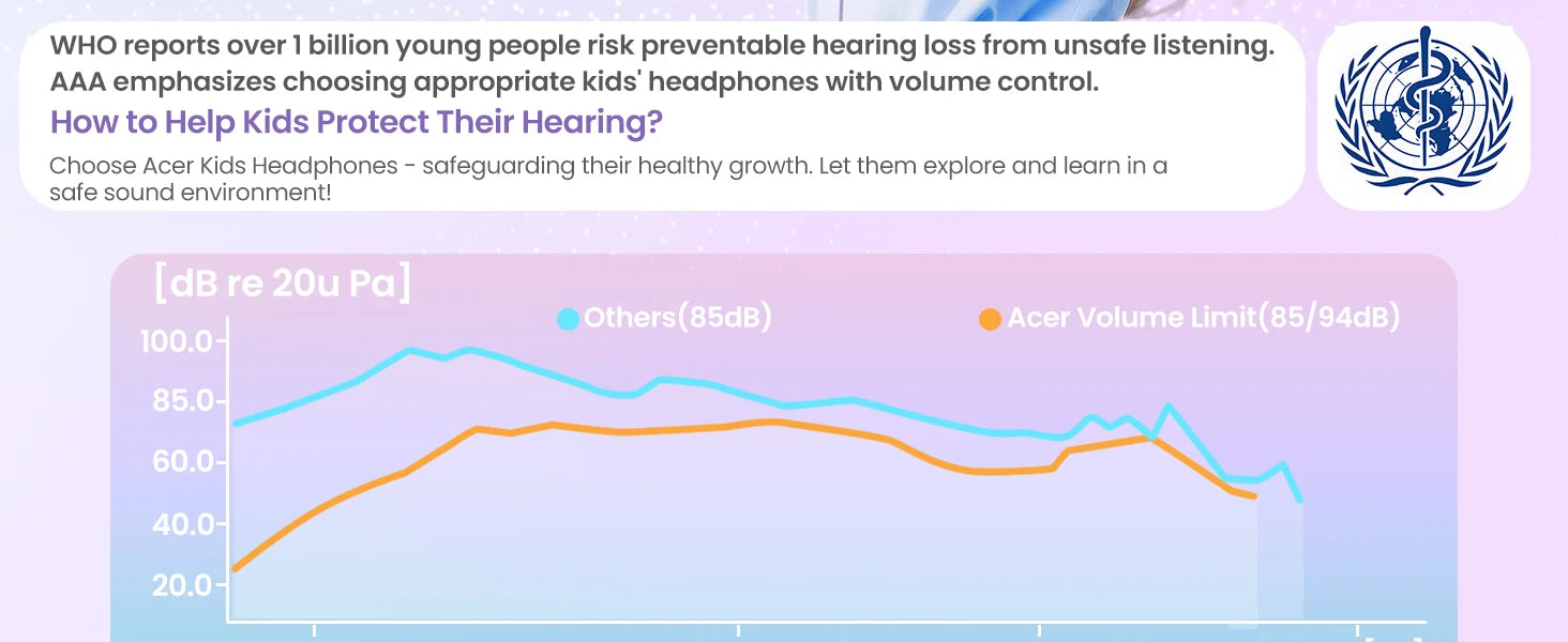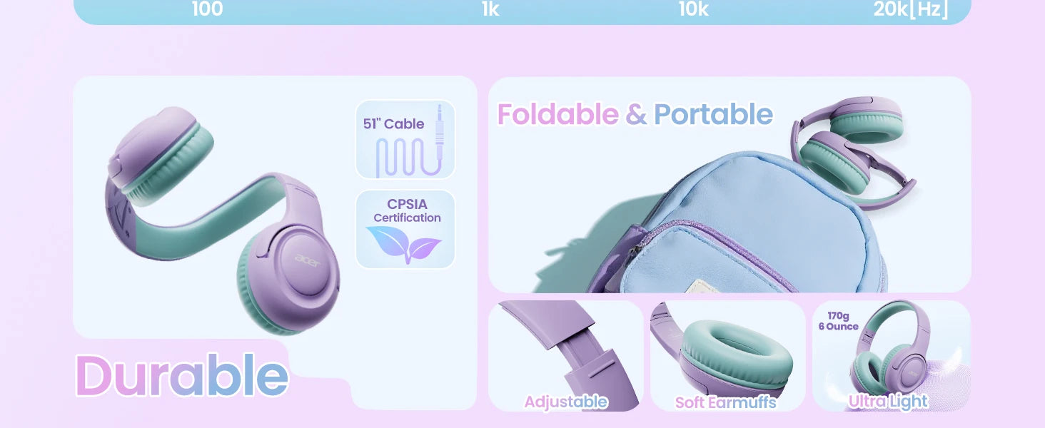 Dual Safety Mode 85/94dB: Kids headphones for school. Protect young ears with volume control. Designed to meet strict US market regulations, our headphones feature a built-in volume-limiting technology (≤85dB) to safeguard kids' delicate hearing, preventing long-term damage from excessive noise. Perfect for school, travel, or home use, giving parents peace of mind while kids enjoy their favorite content.