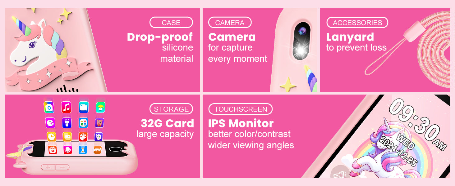 their imagination and creativity. The Kids Smartphone has 5 built-in fun