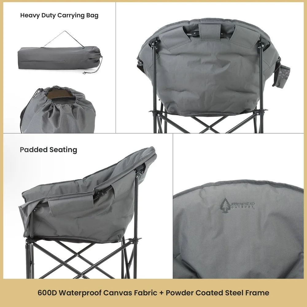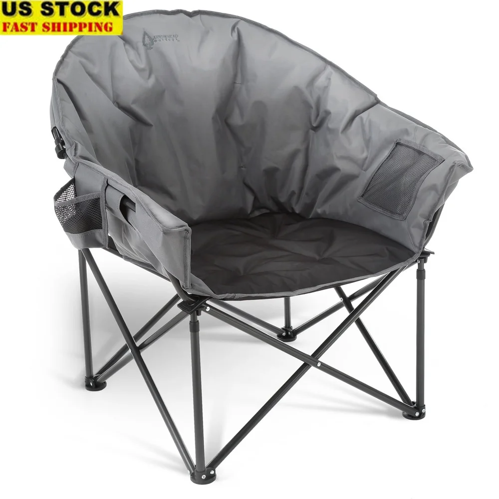 Oversized Heavy-Duty Folding Camping Chair with Cup Holder External Pocket Portable Padded Seat