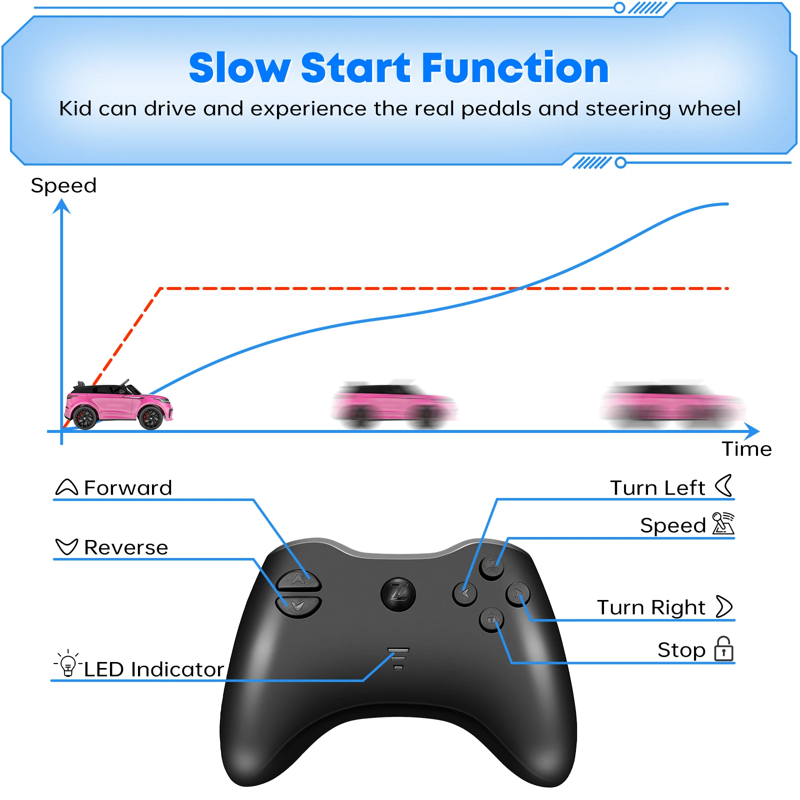 Parent Remote & Manual Mode: By using the parent remote control, parents can stop the car in case of an emergency, They have full control of the vehicle remotely. Manual mode is better for kids who like the fun of steering independently. Safety belts and soft start design prevent children from being startled by sudden acceleration.