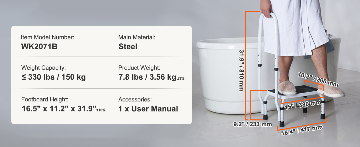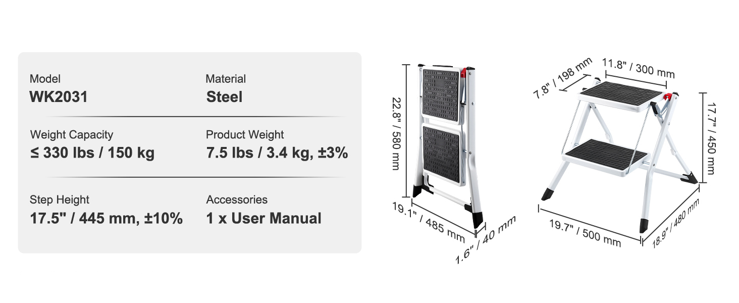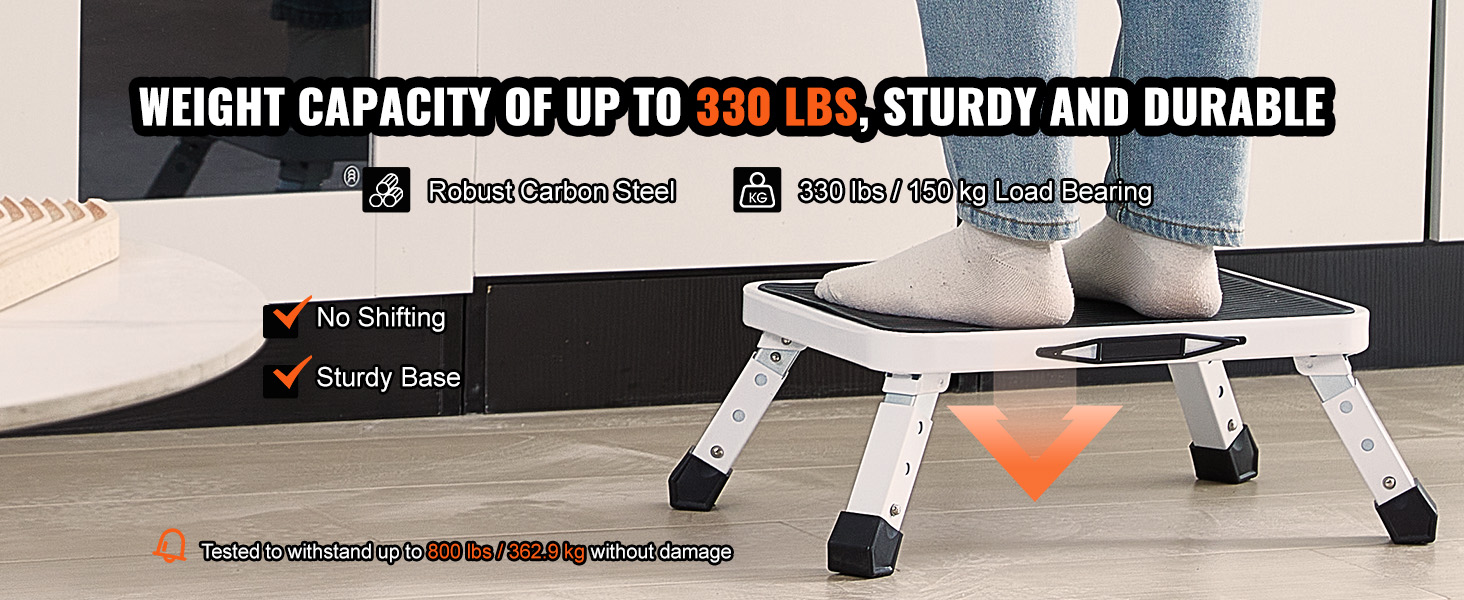 Robust and Durable Construction:Built from sturdy steel, this one-step stool guarantees stability with a remarkable load capacity of 330 lbs / 150 kg, ensuring it remains steady and secure during use.