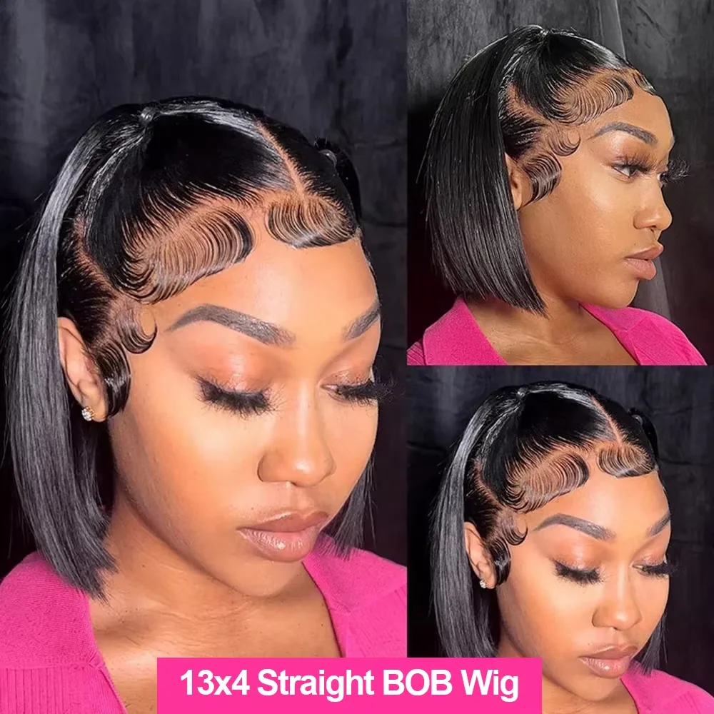 Straight Lace Frontal Human Hair / Brazilian / 100% Short Bob Wig For Women / 220% Straight Lace Front Bob Wigs \